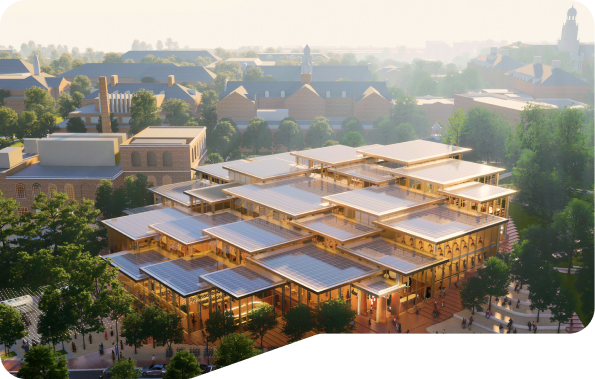 This 138,000-square-foot, four-story campus social hub, designed by Bjarke Ingels Group with Rockwell Group as Interior Architects and Shepley Bulfinch as Architect of Record, is intended to enhance creative expression and social engagement through its features including a 250-seat theater, dance studio, dining hall, and various outdoor gathering spaces.